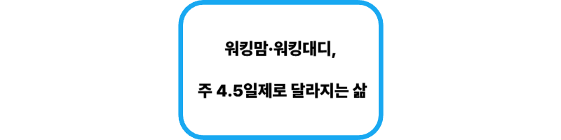 워킹맘·워킹대디에게 워라밸은 단순히 ‘일찍 퇴근하는 것’만으로는 해결되지 않습니다. 진정한 워라밸은 일과 육아, 휴식과 자기계발이 조화를 이루는 생활 구조를 의미합니다. 주 4.5일제가 이 방향으로 한 걸음 더 나아가는 계기가 될 수 있습니다.